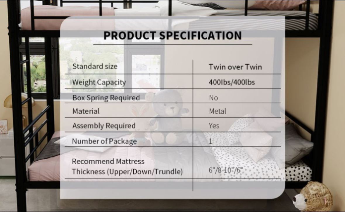 Durable and Safe Construction: Crafted from high-quality, rust-resistant steel with a powder-coated finish, this bunk bed ensures long-lasting durability and stability.Versatile Design: This multifunctional bunk bed can be easily converted into two separate beds, offering flexibility for growing families or shared spaces.Secure and Easy Access: Equipped with a sturdy, non-slip...