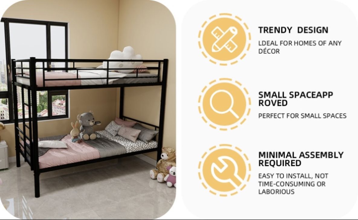 Durable and Safe Construction: Crafted from high-quality, rust-resistant steel with a powder-coated finish, this bunk bed ensures long-lasting durability and stability.