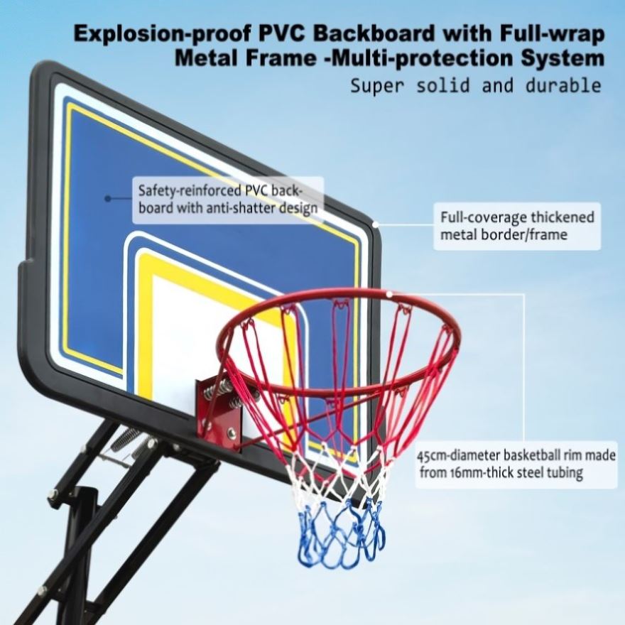 - Height-adjustable basketball hoop: The height of the basketball hoop can be adjusted from 8.04 ft to 10.01 ft, suitable for teenagers and adults to practice basketball