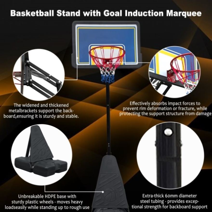 - Stable base: The mobile base can be filled with water or sand to ensure your safety and stability when shooting the basket. Two built-in wheels provide convenience for transportation and movement