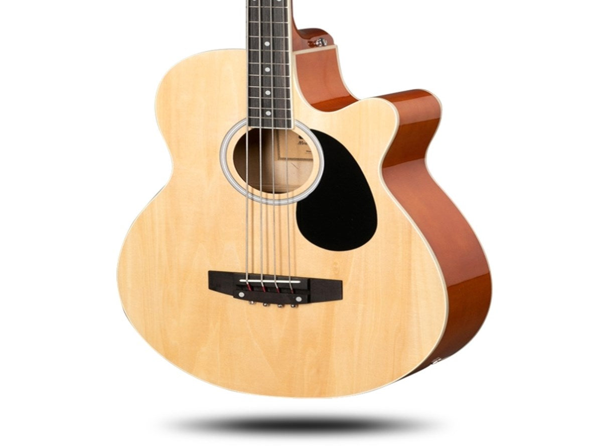 Glarry GMB101 4 string Electric Acoustic Bass Guitar have a Basswood Top, Back and Sides, ABS nut, Rosewood Bridge and Fingerboard. The body length 44.5 in has a better resonance, making the sound fuller.