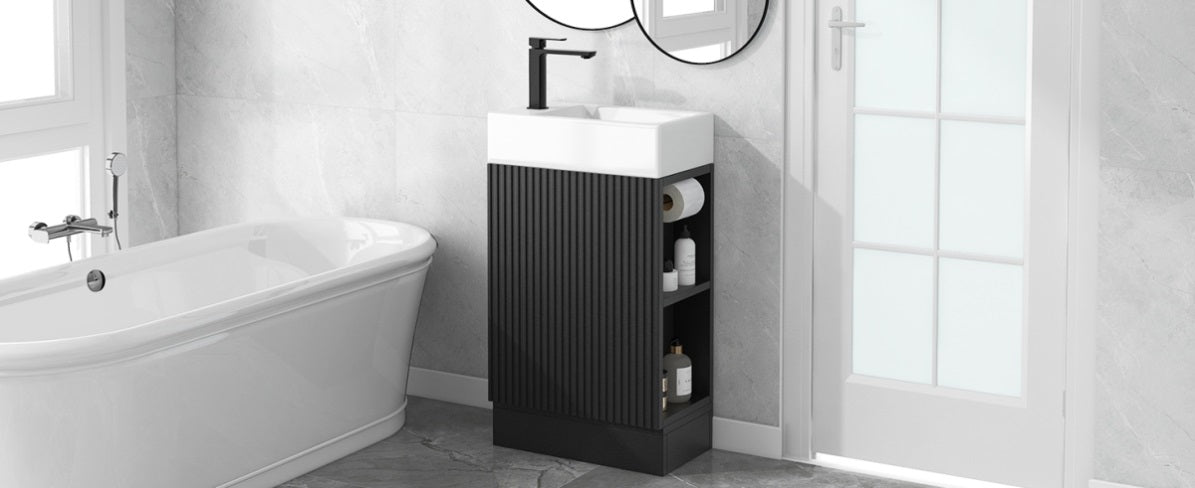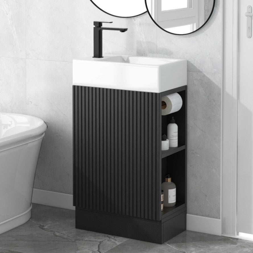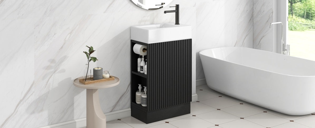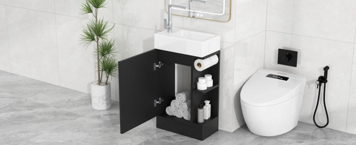 Left or Right Orientation Available - This bathroom vanity is flexible to install according to your habits. It's up to you to put the shelf and toilet paper holder on the left or right.