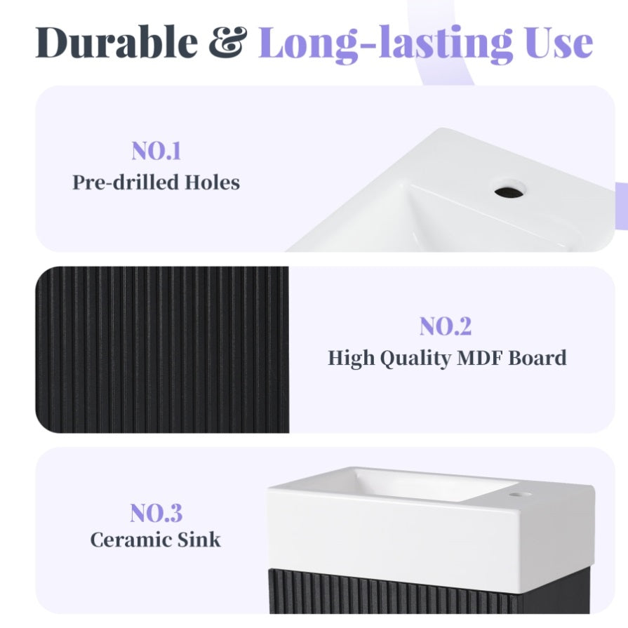 Material - Practicality and durability is important to bathroom facilities, so we use MDF boards for this product, which not only increases the product stability but also ensures a long-lasting use. It is water-proof, stain proof and very easy to clean.Ceramic Sink - The sink is made of ceramic and...