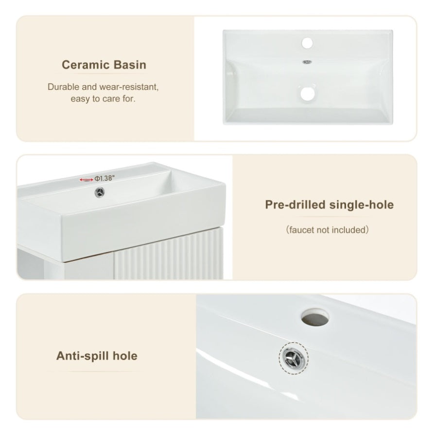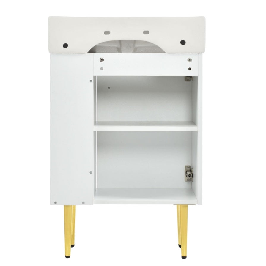 21.6" white Bathroom vanity, Combo Cabinet, Bathroom Storage Cabinet, Single Ceramic Sink, Right 79483389