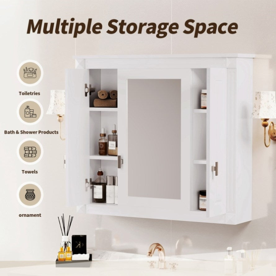 [Mirror Cabinet] The wall-mounted cabinet with mirror can save you extra time in picking mirrors. At the same time, the mirror cabinet can meet your multiple needs. You can use it as a storage cabinet or as a makeup mirror.