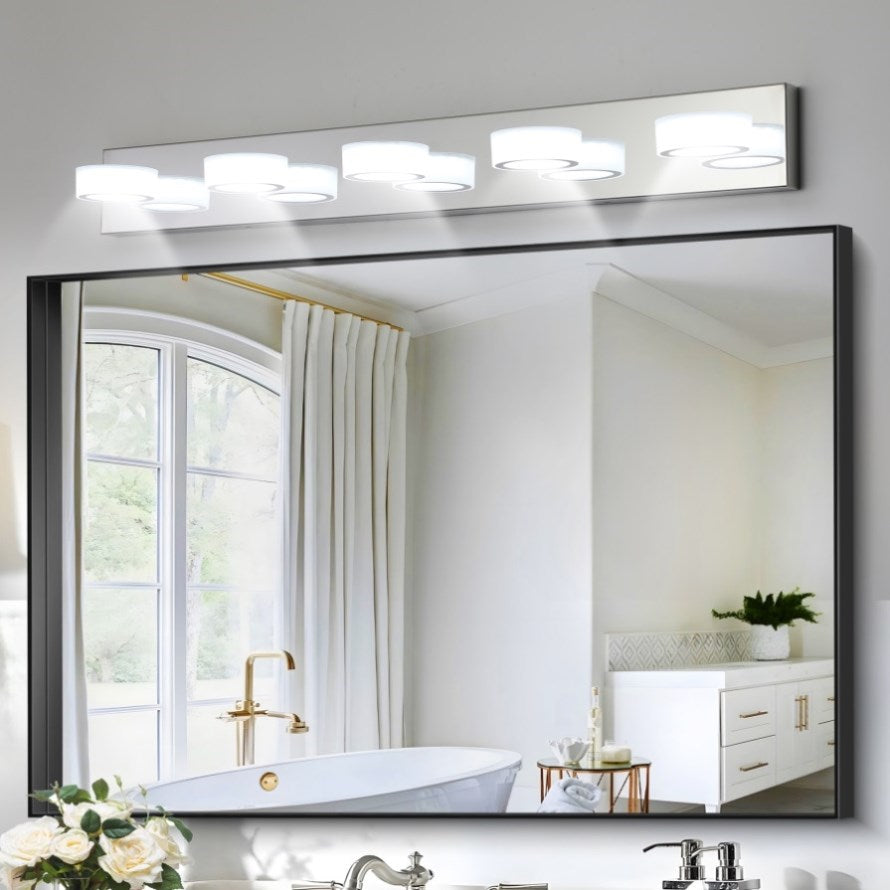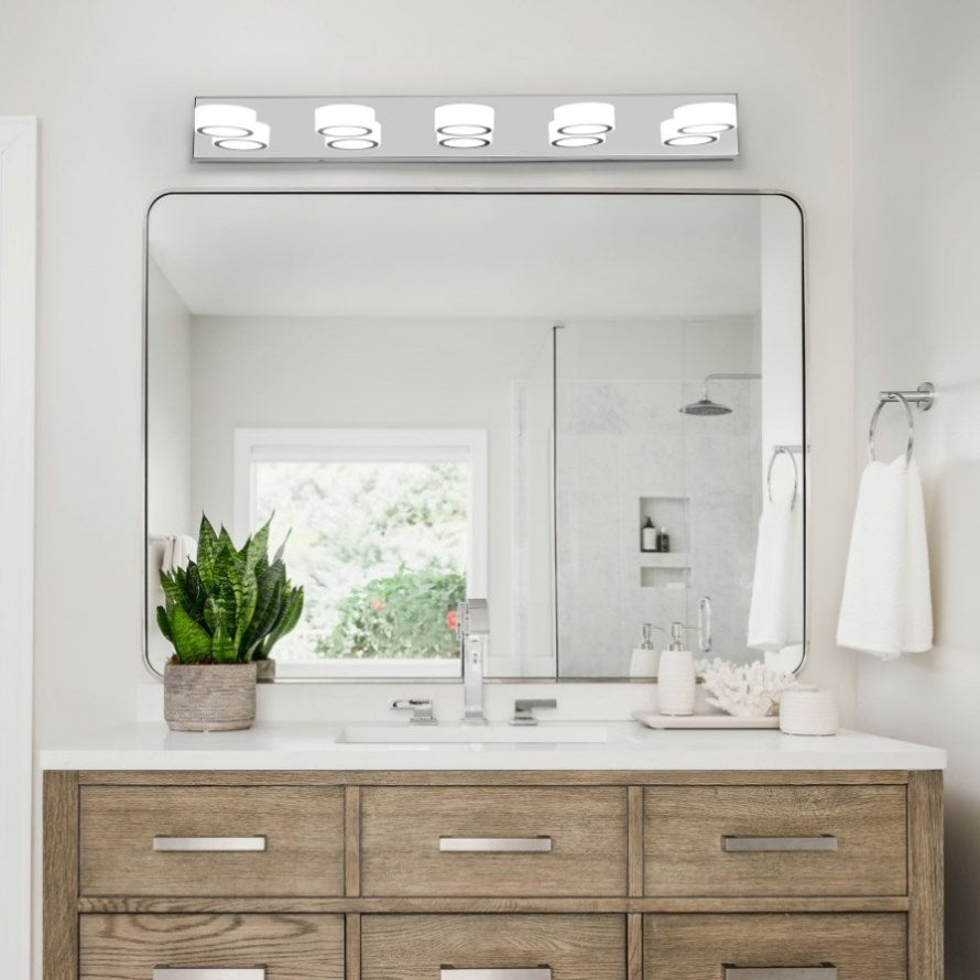 Modern 5-Light LED Vanity Light Fixture - Chrome Finish with Acrylic Light Shades - Energy-Efficient W1340P206815