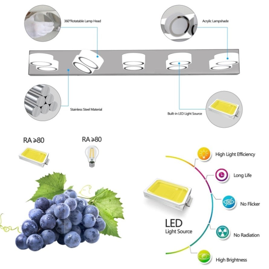 Modern simple design: This wall lamp adopts a modern simple style, suitable for a variety of home decoration styles.Quality material: Acrylic lamp shade combined with silver chrome plated base, durable and beautiful.Efficient lighting: 5 lamp holders provide bright and even light distribution for a variety of applications.Easy to install: simple...