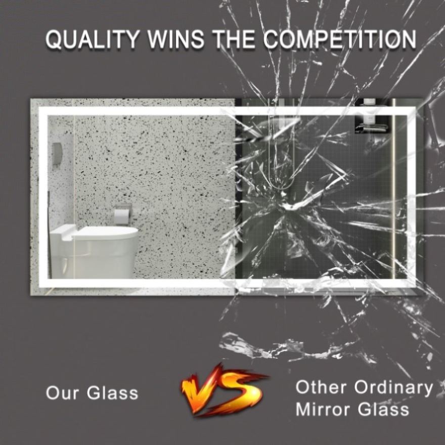 Lights & Super Bright: With built-in LED strip lights, LED lighted bathroom mirror gives out the lighting. The lighting mirrors are bright enough for makeup or shave or beauty care. Shatterproof & Corrosion Proof:Our mirror is made from stronger glass, that is armored glass. It will not get broken easily. Even it is broken, it will not shatter to piece, no harm, more safe to use. With epoxy coat, this mirror is corrosion proof. It will not get corroded after 30days acid test. Colors Changeable and Brightness Dimmable: This LED illuminated mirror is multifunctional. You can press the button to change the color temperatures: Warm(3000K), natural (4200K) and white(6400K). You can also dim the bright to your comfortable level. All these will be easily controlled by the touch button. The smart memory function will record the lighting setting and keep the previous lighting status after turning off and on. Easy to Install and Powered by Hard Wire