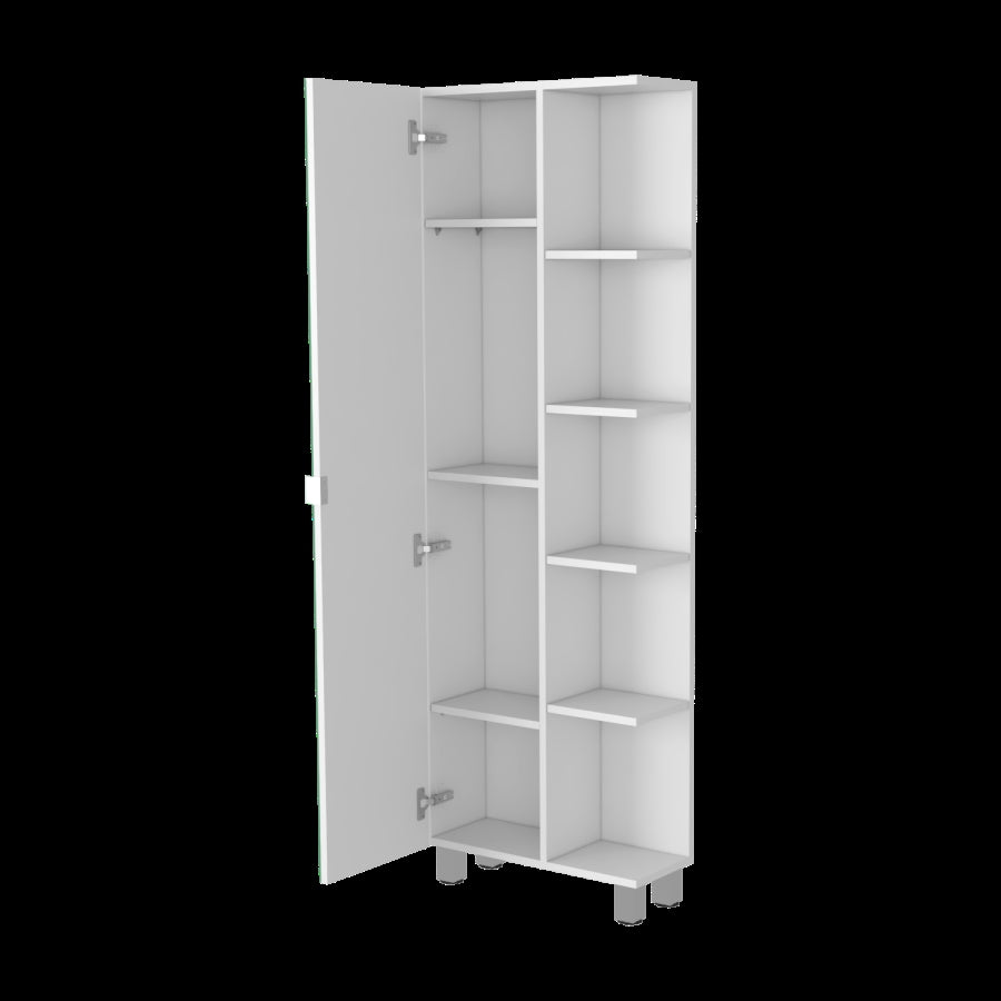 62" High Bathroom Cabinet58" High Mirrored DoorFour Exterior Open ShelvesOne Cabinet With Three Interior adjustable ShelvesDecor and setting objects are not includedComplete your room with other items from the collection (sold separately)Product Dimensions (Approximately)33.3 x 21.79 x 157.99 (W x D/L x H) cmTotal Weight33.3 kgsAttributesMain Color : Main Material :...