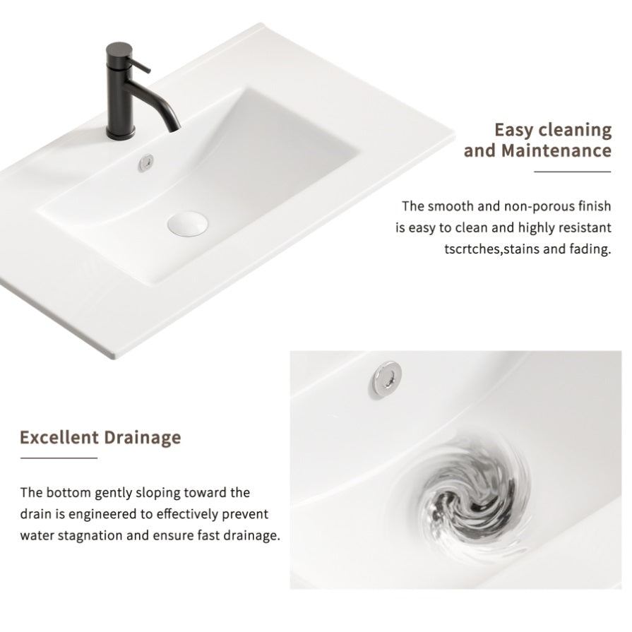 Clean & Modern Vanity Sink for Bathroom: Features an integrated oval sink and contemporary solid white finish that pairs well with any bathroom decor style