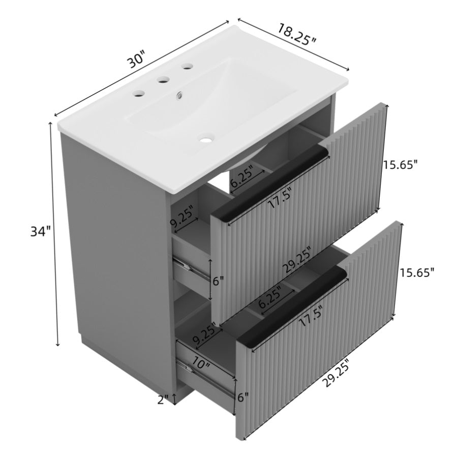 30" Bathroom Vanity with Ceramic Sink and Full-Extension Drawers, Freestanding Bathroom Vanity with N817P288915G