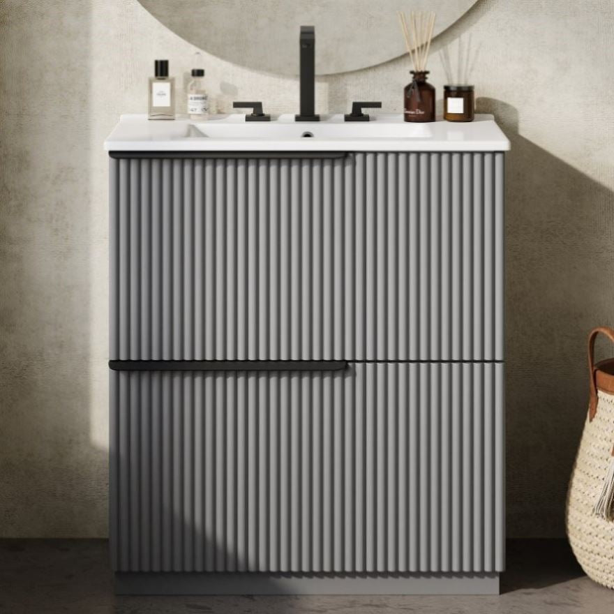 Handcrafted fluted design: Adds depth and sophistication to any bathroom. The vertical grooves create a striking play of light and shadow while offering a tactile surface that naturally resists fingerprints and smudges, maintaining its refined appearance with minimal upkeep.