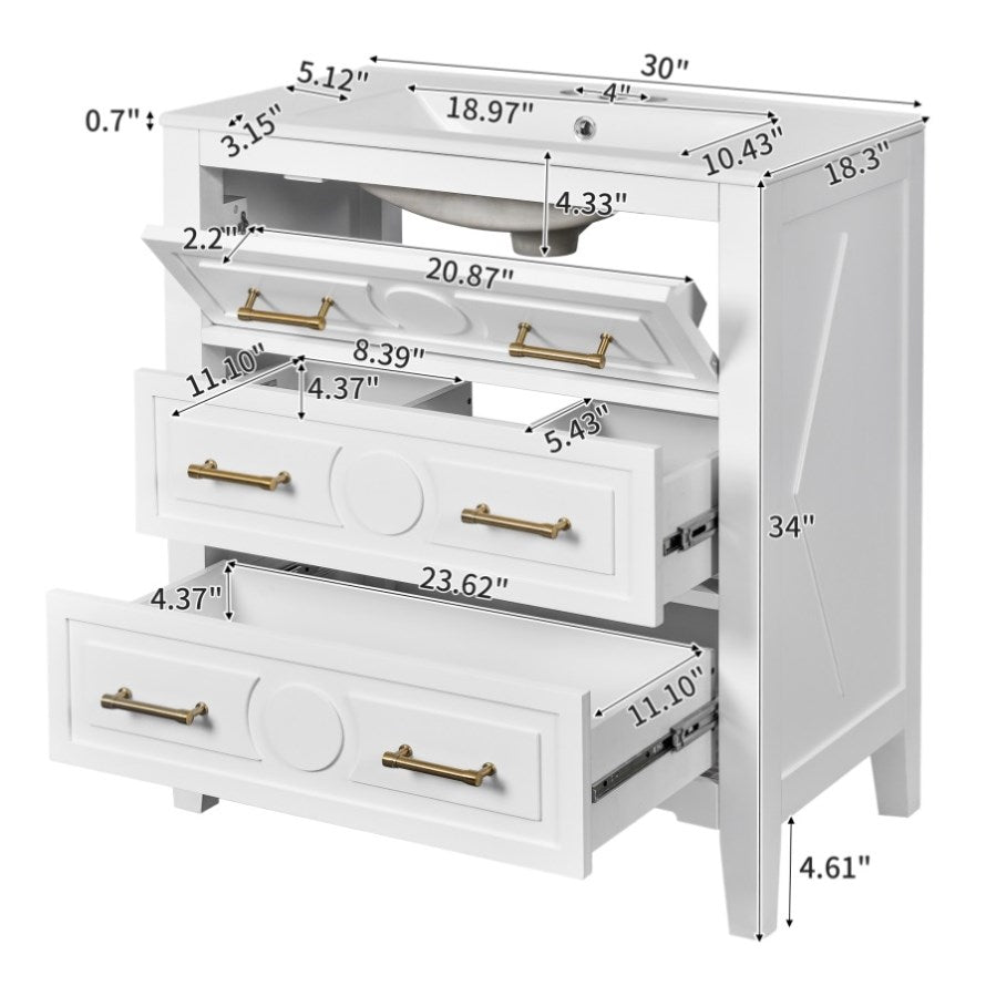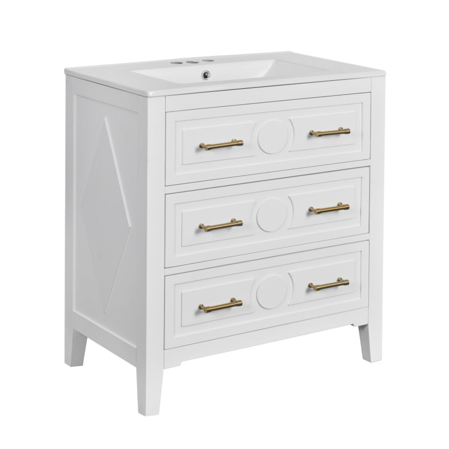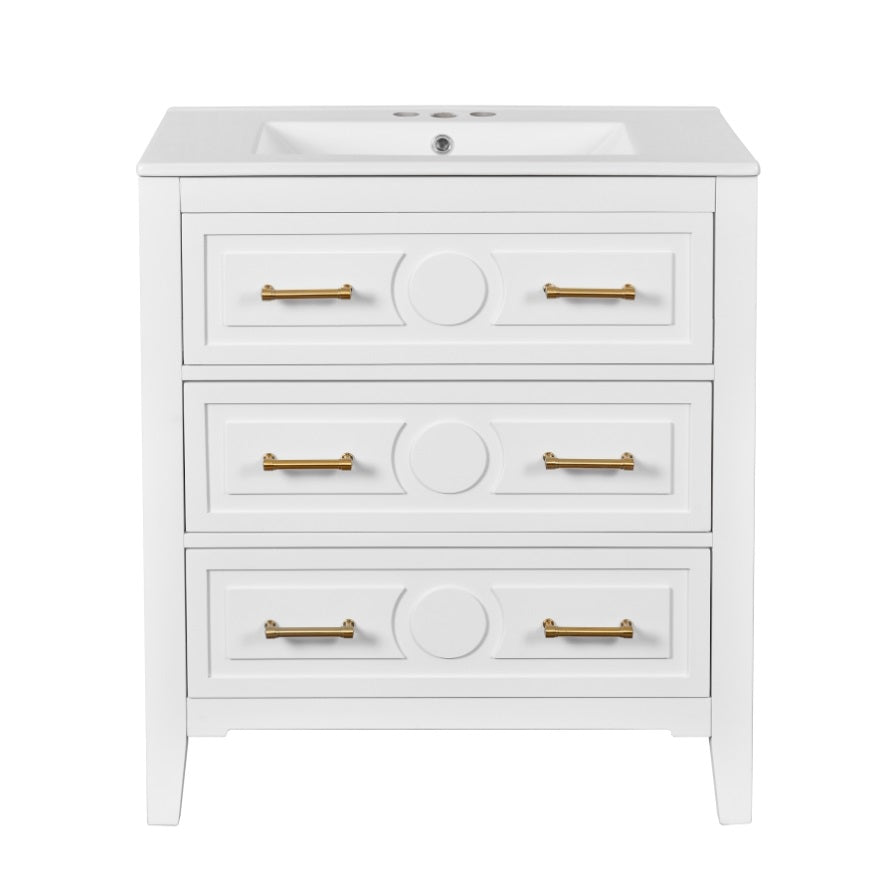 30'' Bathroom Vanity with Ceramic Sink Combo, Free Standing Single Vanity Set with 3 Drawers, Solid N710P246209K