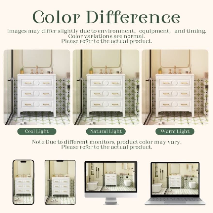 [Concealed Storage]We have equipped this bathroom cabinet with three drawers as storage space. You can store your bathroom goodies inside as needed. Just pull it when you need it. The drawer can also effectively block dust and water stains when it is closed.