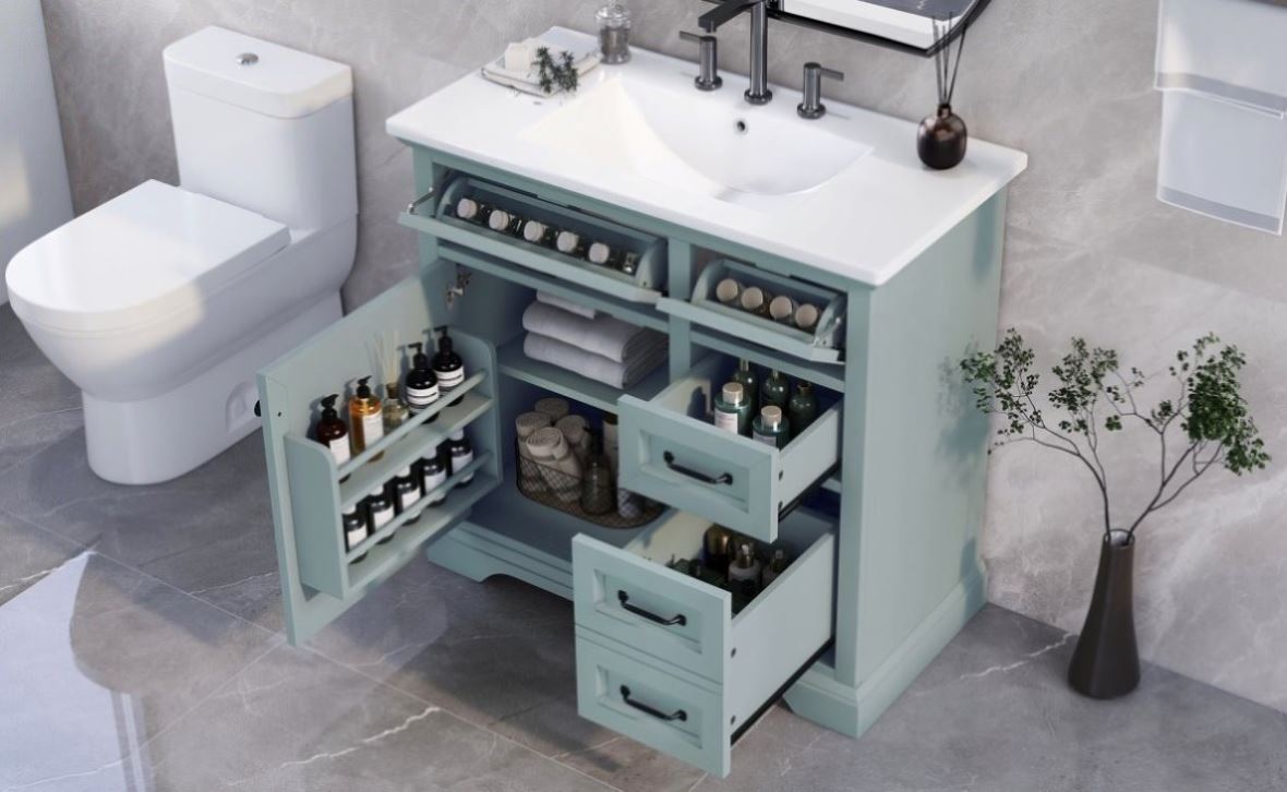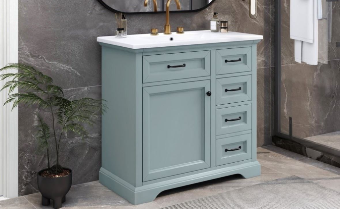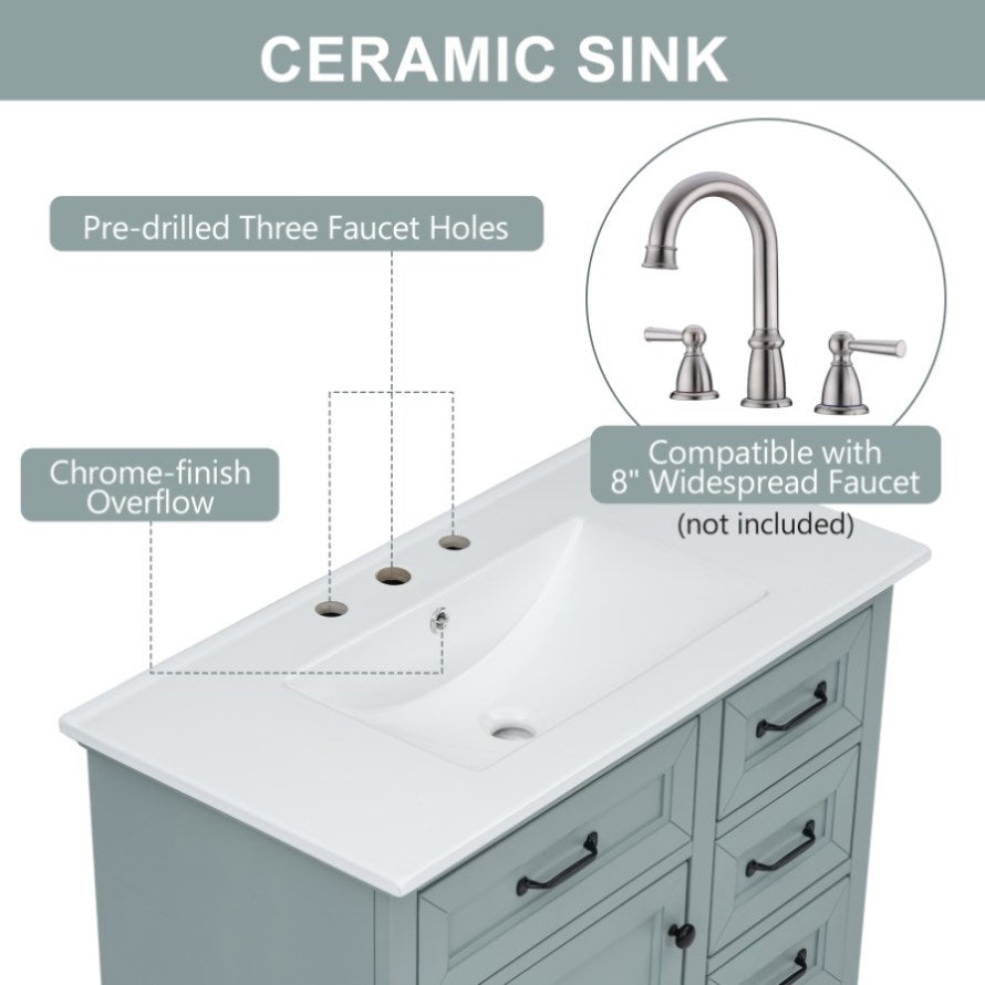 About Color: This bathroom vanity is in grey with a bit green. The real color of this product may differ slightly from the photo in terms of lights during photo shooting or the monitor's display. Please refer to this real product.