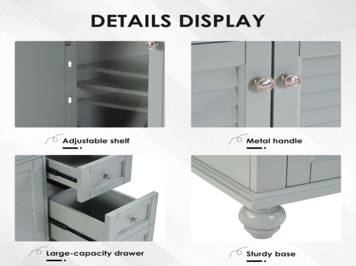 Includes flip-top drawers, single drawer, large storage drawer, and double inner shelves with adjustable layers for maximum organization.12" 3-section steel ball bearings slides ensure smooth operation and durability. Solid wood frame with P2 MDF panels for longevity.Built-in ceramic sink resists stains and scratches. Easy to clean and maintains a sleek,...