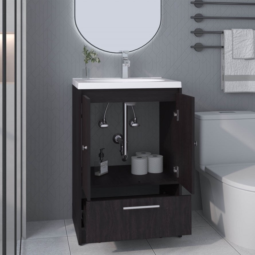 Bathroom Vanity, 2 Doors, 1 Drawer, Black Wengue B097P350324