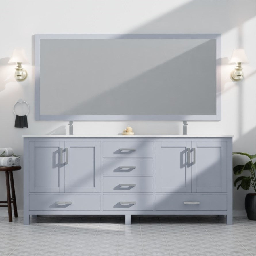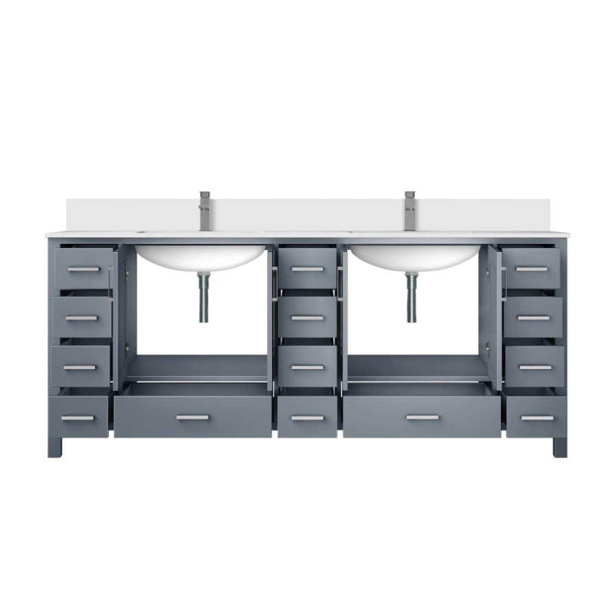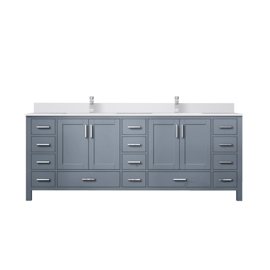 Dark Grey Double Bath Vanity 84 in. W x 22 in. D, White Quartz Top, and Faucet Set B2731P259153