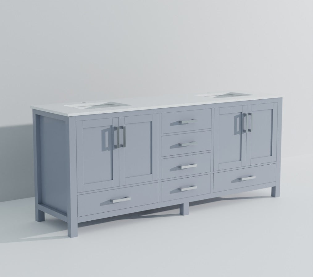 Dark Grey Double Bath Vanity 84 in. W x 22 in. D, with White Quartz Top B2731P258975