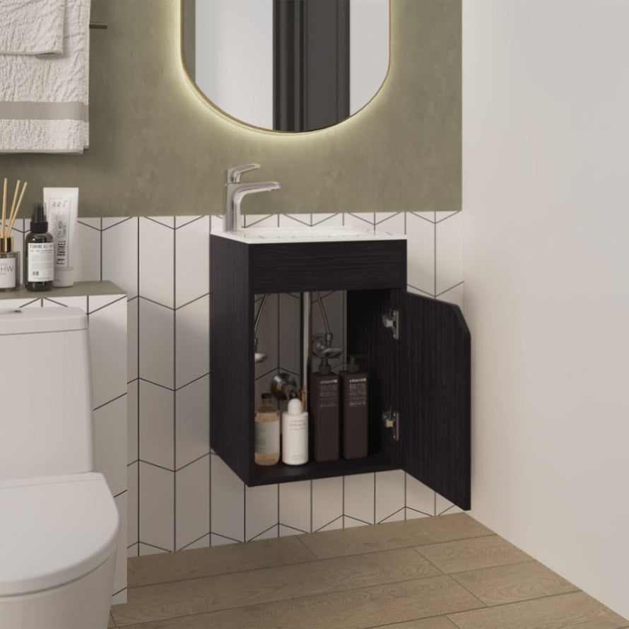 Versatile Storage: The integrated cabinet below the sink provides ample space for organizing toiletries, towels, and other essentials.