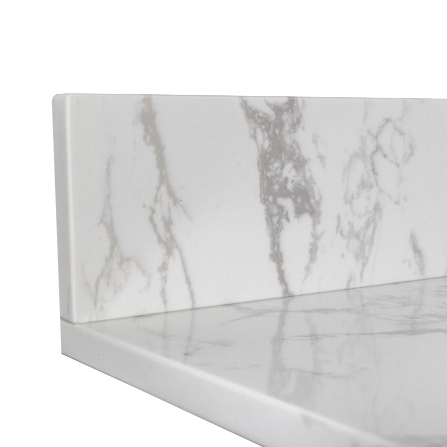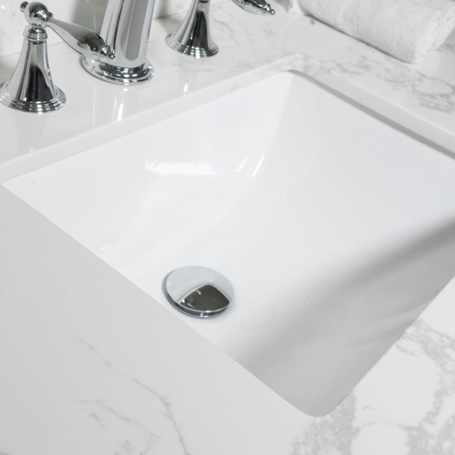 [Easy to Installation] Top pre-drilled for 8 inch faucet Assembled stylish rectangular white vitreous china under mount bowl with safety overflow hole This top is perfect for quick and easy remodels Obtain the beauty and durability of marble without hiring a professional