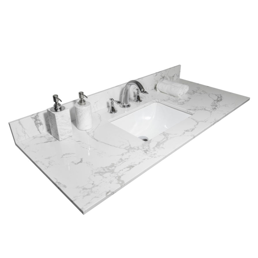 Montary 43x22 bathroom stone vanity top engineered stone carrara white marble color with rectangle W50921982