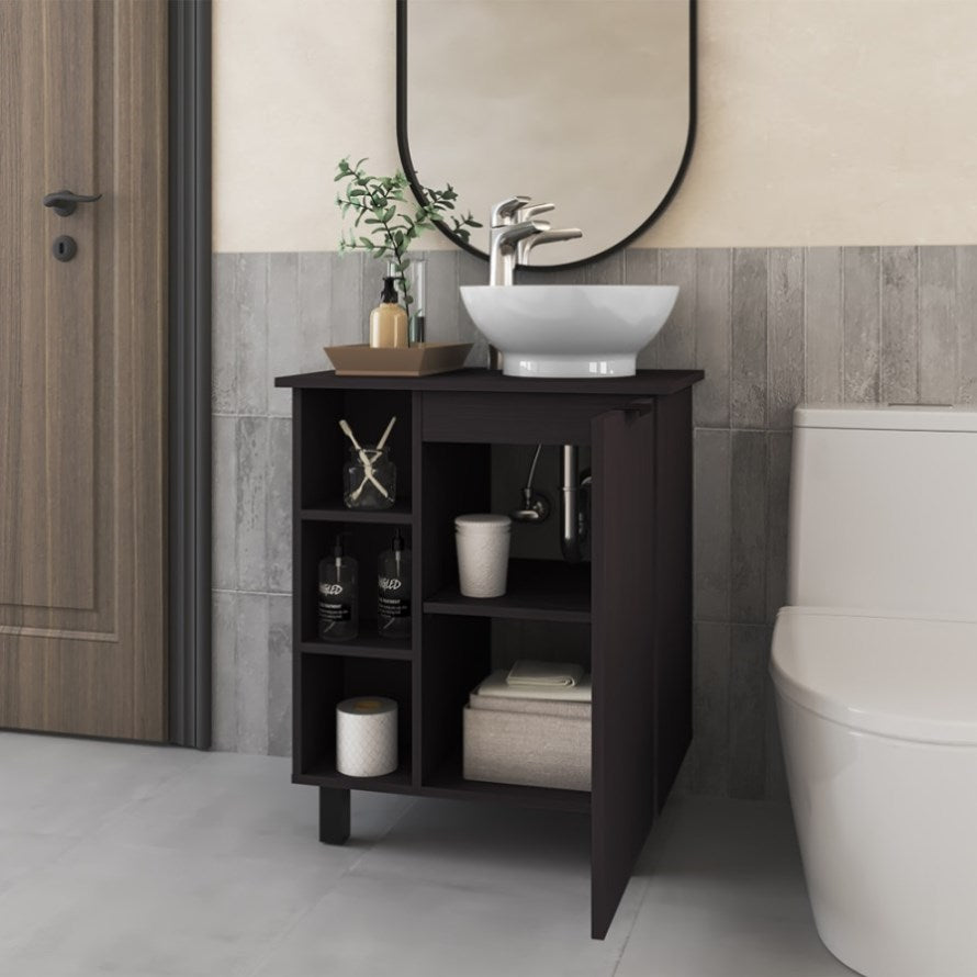 Ample Storage: Includes open shelves and a cabinet beneath the sink for storing all your essentials.The integrated sink helps maximize countertop space while providing a functional design.Minimalist Aesthetic: Perfect for modern and transitional bathroom styles.**NO FAUCET INCLUDED**Our furniture is made of the highest quality materials and is designed to last....