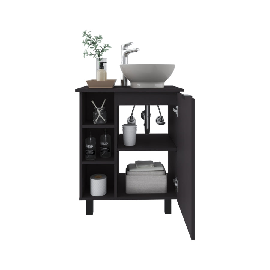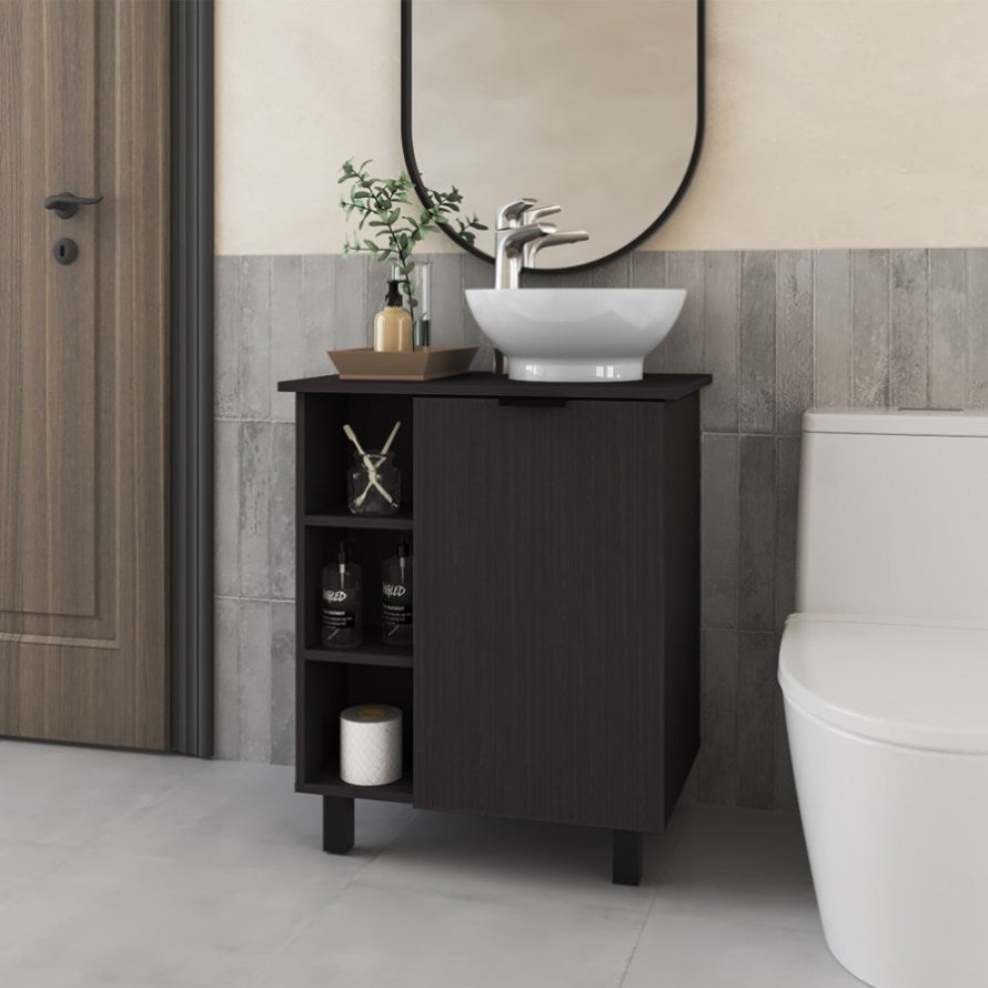 Ample Storage: Includes open shelves and a cabinet beneath the sink for storing all your essentials.