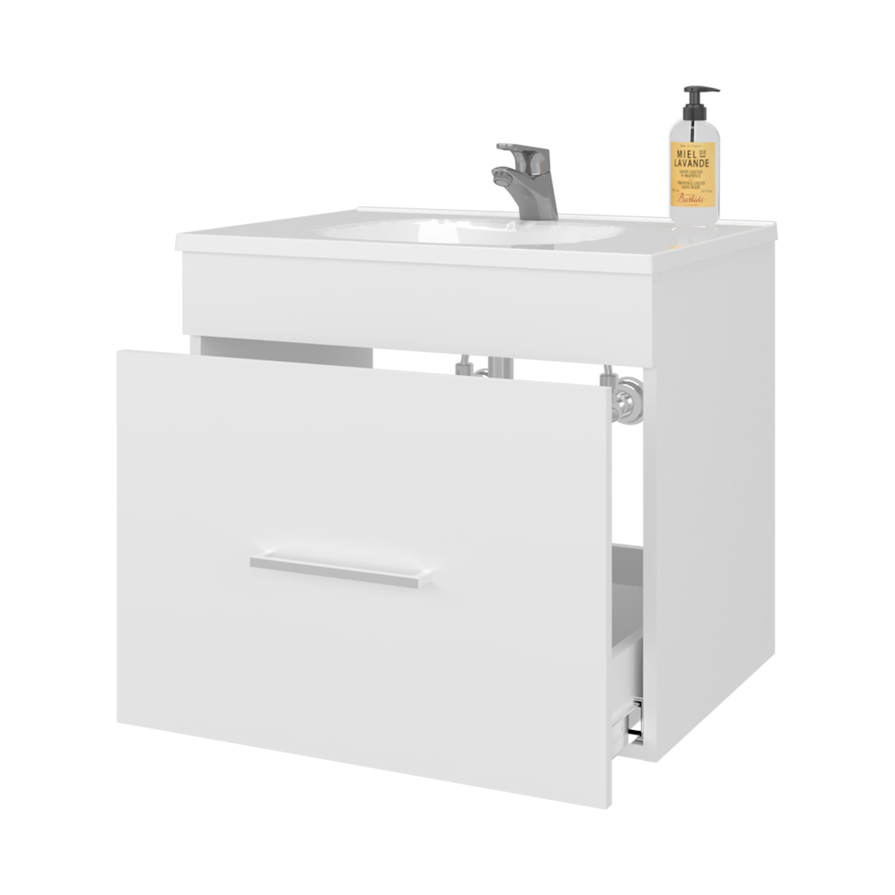 White 1-Drawer Floating Bathroom Vanity Set with Sink B062P355542