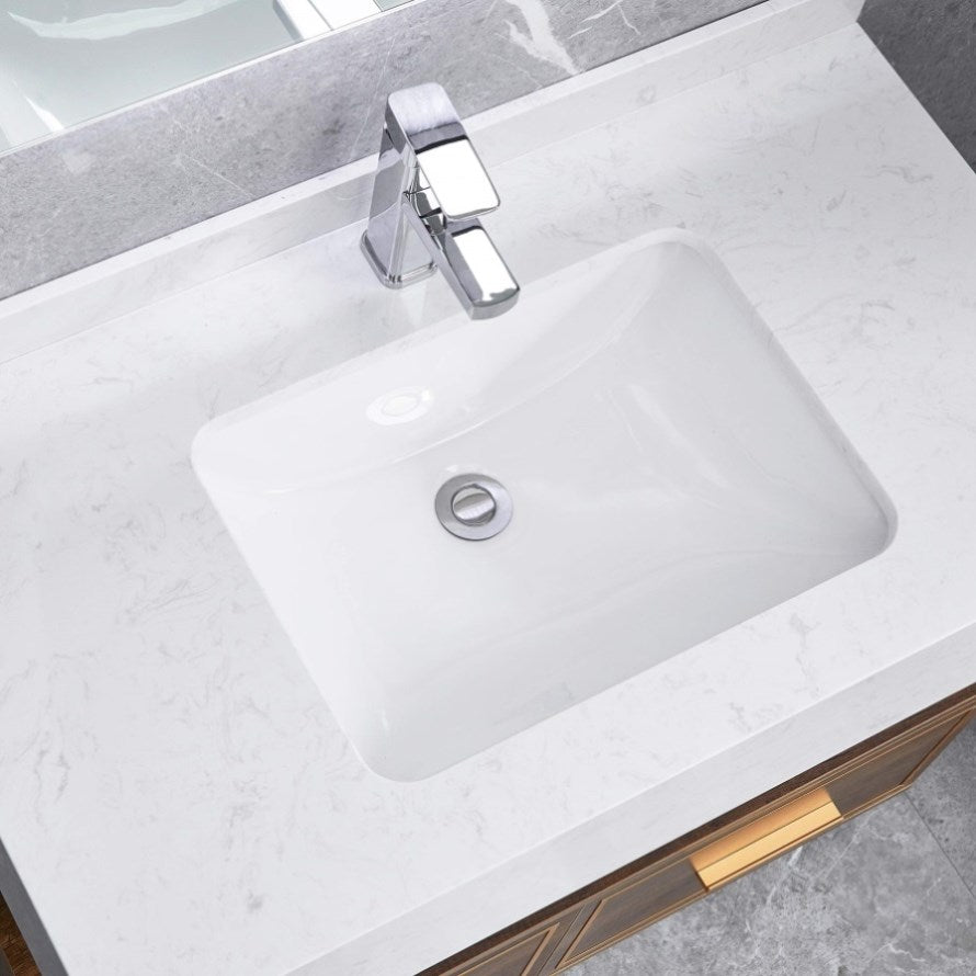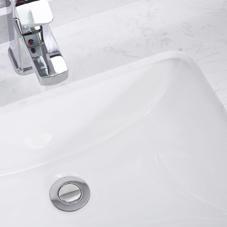 White Rectangular Undermount Bathroom Sink With Overflow W122549615