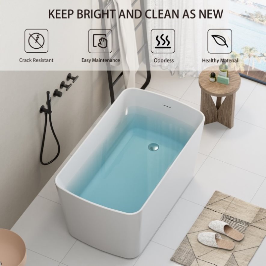 HASSLE-FREE INSTALLATION & UPKEEP: We provide a comprehensive, easy-to-follow installation manual for a smooth setup process. The tub is crafted from materials that are not only simple to clean but also long-lasting. The acrylic surface is engineered to resist stains and scratches, while the drainage system is designed for durability with anti-corrosion and anti-rust properties.