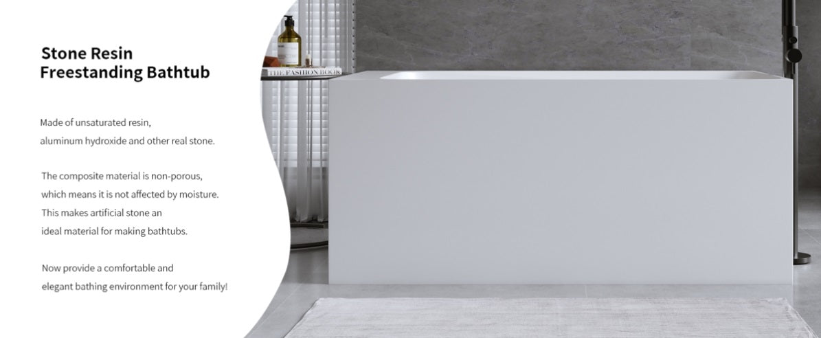Stone resin material: The free stand bathtub is composed of a sturdy surface, with years of durability and strength. Hard, tough, wear-resistant, non permeable, slow heat dissipation, no obvious cold sensation, and does not change color for a long time.Stone resin material: The tub is composed of a sturdy surface,...