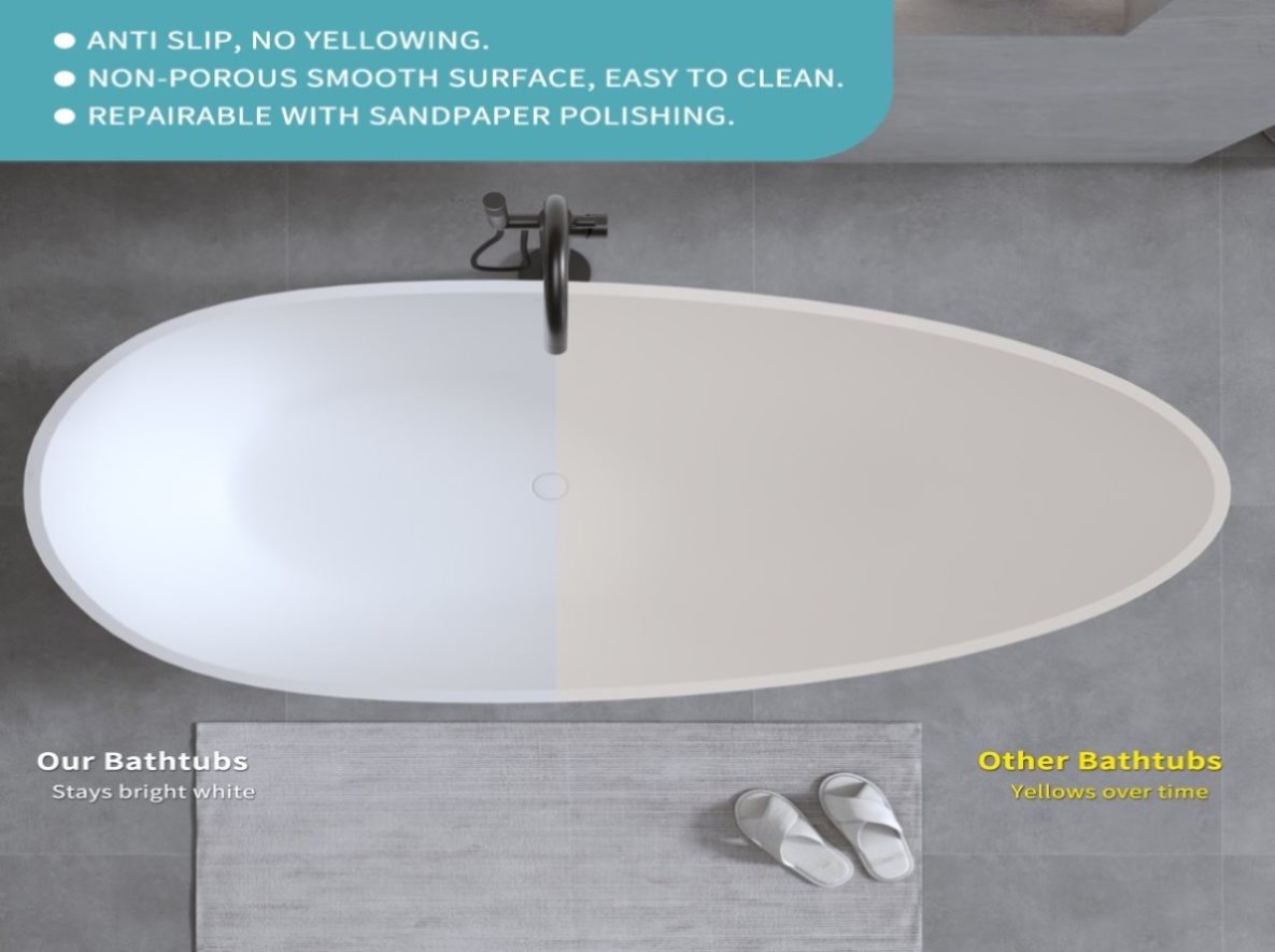 Repairable:Free standing tub small scratches can be removed with sandpaper. Severe damage can be repaired by sanding. After long-term use, it can still look new after simple maintenance.