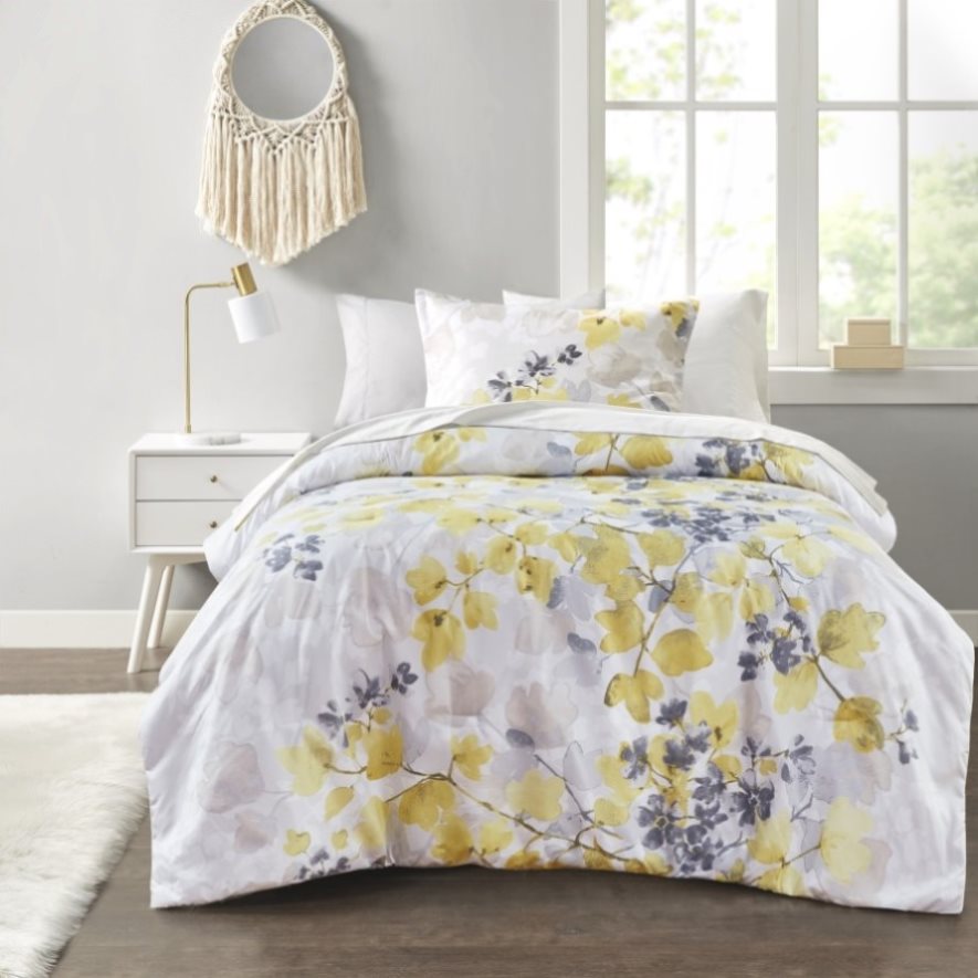 Complete modern botanical bed set with comforter and sheet set featuring yellow and gray leafy printUltra soft microfiber; Hypoallergenic polyester filling in the comforter and decorative pillows (filling contains no allergens and is treated to be dustproof)Fitted sheet comes with two convenient side pockets on each length side for extra...