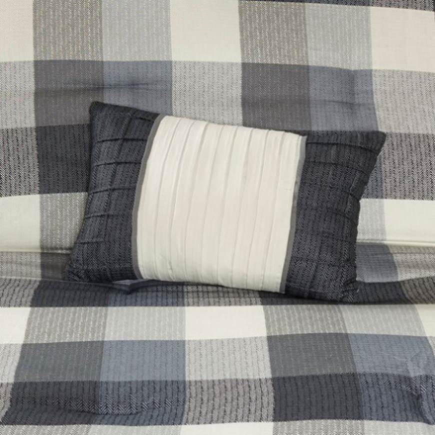 For an irresistibly warm and comfortable look, Madison Park’s Ridge 7 Piece Herringbone Comforter Set is the perfect update to your space. This rich comforter sports a bold buffalo plaid pattern that is printed on the herringbone fabric. The striking design gives way to a herringbone printed border at the foot of the bed for additional charm. Coordinating shams mimic the style of the comforter, enhancing the warm and cozy lodge aesthetic. Three decorative pillows with hand-stitched embroidered details bring texture and dimension to the top of the bed, while the herringbone printed bed skirt offers a clean and handsome finish. Items in the set may come in a rolled or compressed packaging, which will need to be fluffed up or steam ironed before use to remove wrinkles.