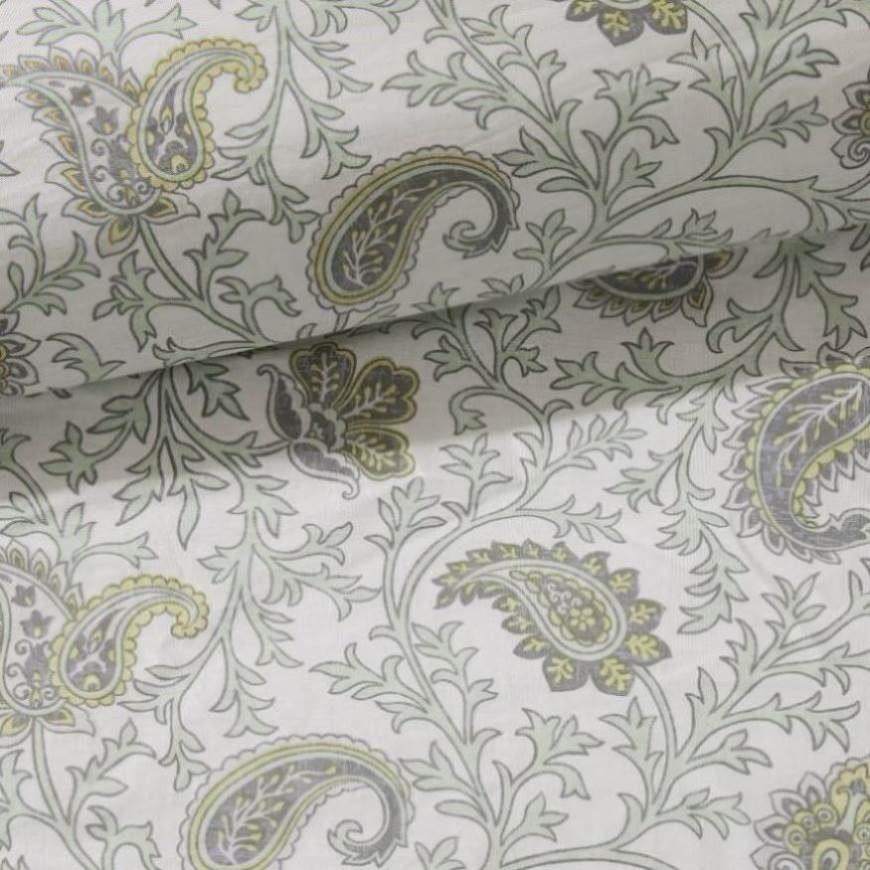 Printed cotton face, cotton/poly back comforter and shams, 8oz/sq yard polyester filling; cotton/poly bedskirt, euro shams and pillows
