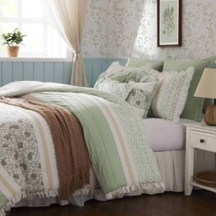 Enhance Your Decor Elevate your bedroom with this 9-piece floral comforter set, blending cottage-inspired, shabby chic, and farmhouse styles for timeless appeal.