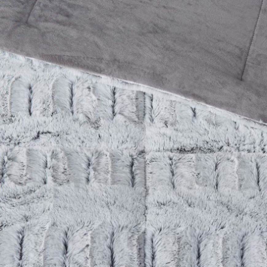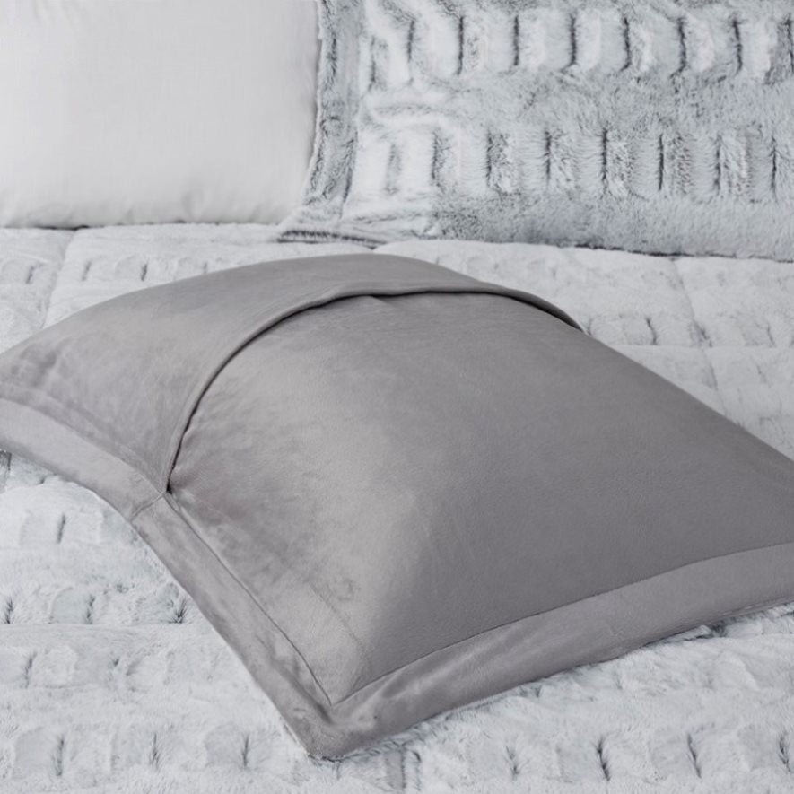 Sleep in the pure softness and comfort of the Gia Back Print Long Fur Comforter Mini Set. The ultra-soft grey comforter flaunts a stylish brushed faux fur on the face that flips to a soft faux mink reverse, for a luxurious look and feel. Matching shams (1 sham for Twin sizes) mirror the design of the comforter and feature a 2-inch flange to complete the comforter set. Hypoallergenic filling in the faux fur comforter provides exceptional warmth and comfort, while the end-to-end box stitching keeps the filling in place. Incredibly soft, this reversible long fur comforter mini set brings the perfect amount of comfort and glamorous style to your bedroom decor. This comforter is OEKO-TEX certified, meaning it does not contain any harmful substances or chemicals to ensure quality comfort and wellness.