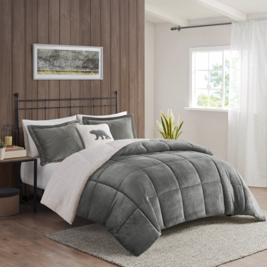 Bring the warmth and comfort of a cabin retreat to your bedroom with the Alton Plush to Sherpa Down Alternative Comforter Set. Made from ultra-soft plush and reversing to a cozy berber, this comforter set includes two coordinating shams (1 in Twin/Twin XL) and a decorative pillow for added style. The down alternative fill is hypoallergenic for a comfortable night of sleep. Machine washable for easy care, this comforter set is OEKO-TEX Certified, meaning it does not contain any harmful substances or chemicals to ensure quality comfort and wellness.