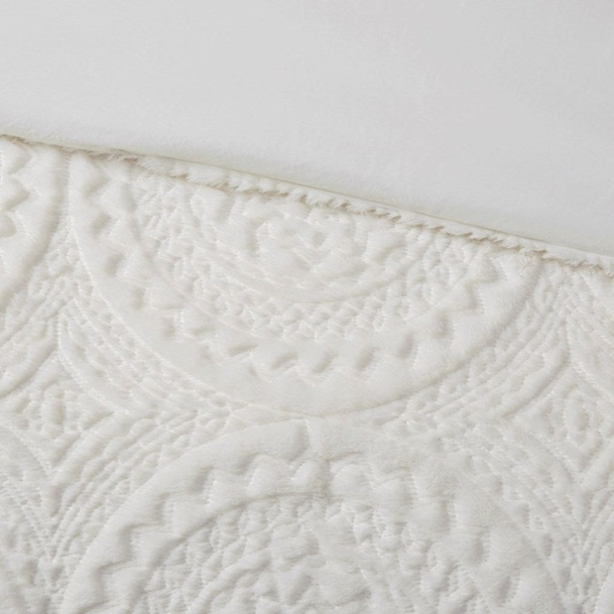 King/Cal King Embroidered Medallion Faux Fur Ultra Plush Comforter Mini Set B03597034