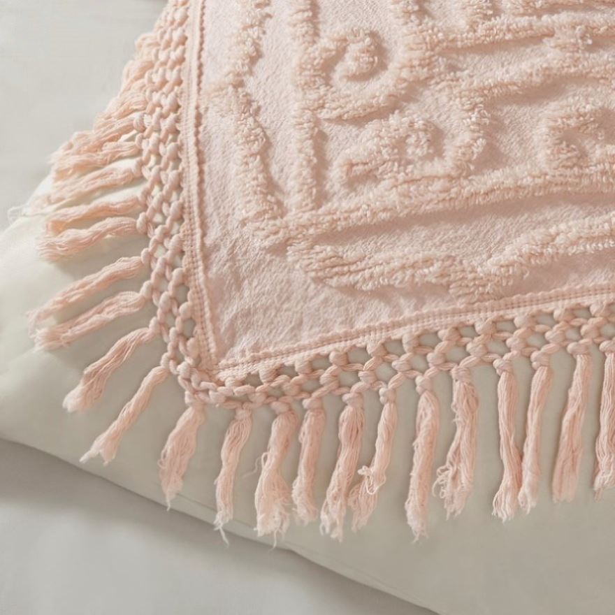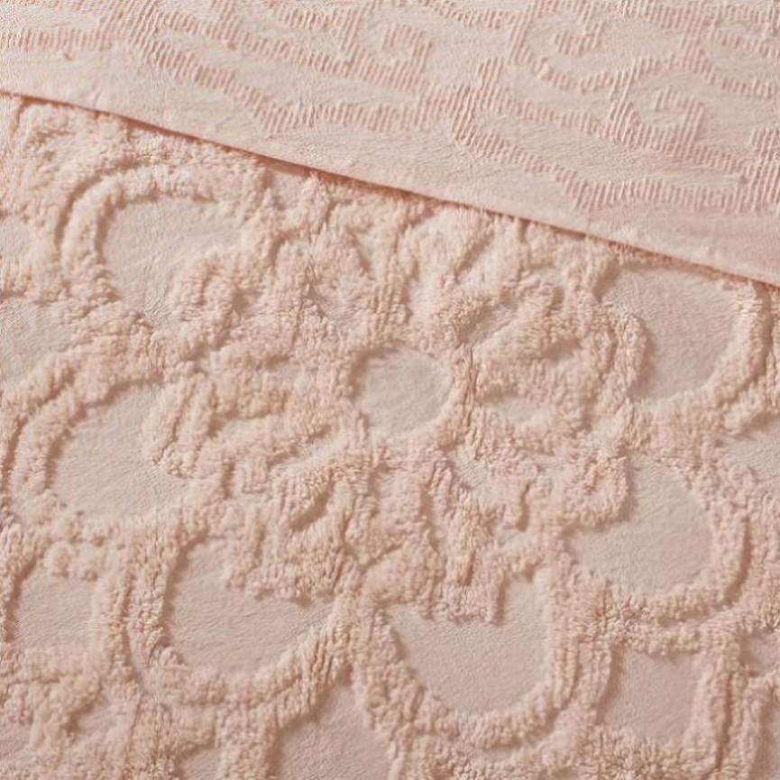 Tufted Cotton Chenille Medallion Fringe Coverlet Mini Set Blush Full/Queen B03597525