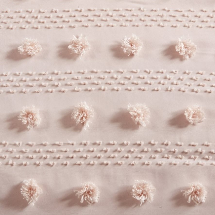Set includes comforter and 2 shams (1 in Twin/Twin XL)Poly clip jacquard comforter set with microfiber reverse and polyester fillingFeatures fun and playful clip jacquard pompom detailsHypoallergenic polyester comforter filling contains no allergens and is dust proofOEKO-TEX labeled textile certified as safe on skinAntimicrobial treatment to keep the bedding fresher...