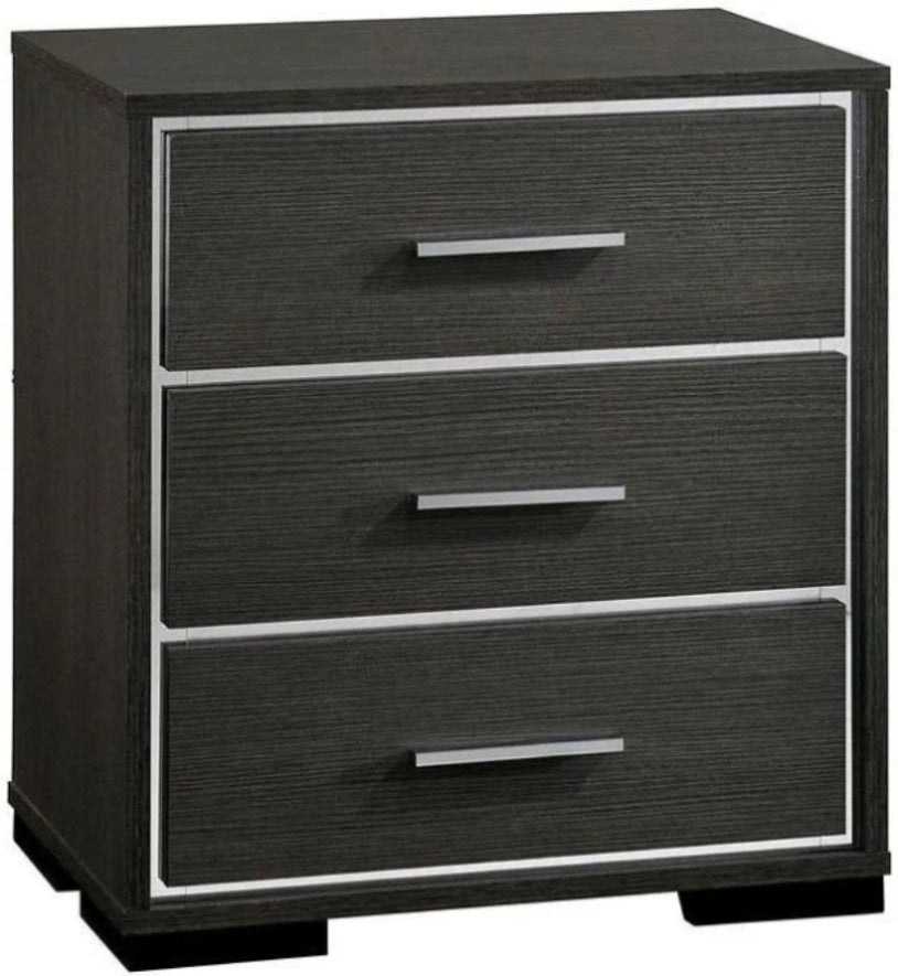1x Nightstand Solid wood Warm Gray Sleek Modern Lines Chrome Trim Insert Contemporary Bedroom HS11CM7589N-ID-AHD