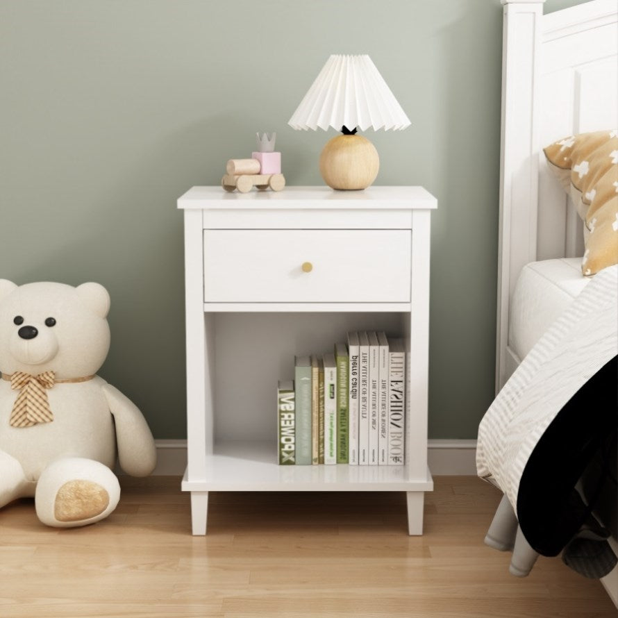 26.77''H Wooden Nightstand with One Drawer One Shelf for Kids, Adults, White 33261202