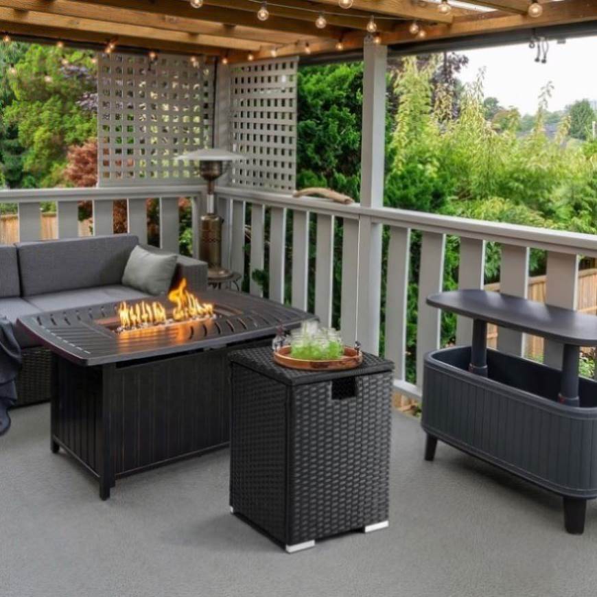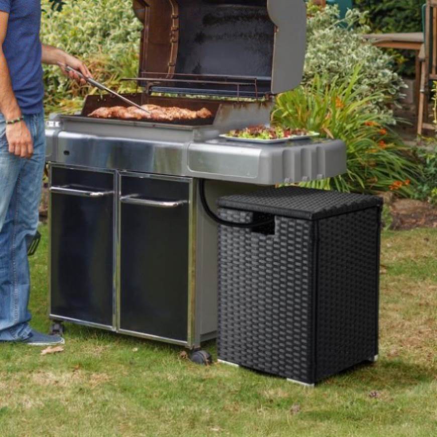 40*40*57cm Iron Frame Gas Bottle Storage Rattan Side Table Black Gradient 71591038