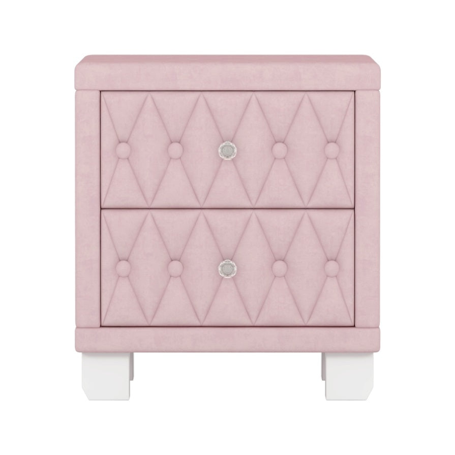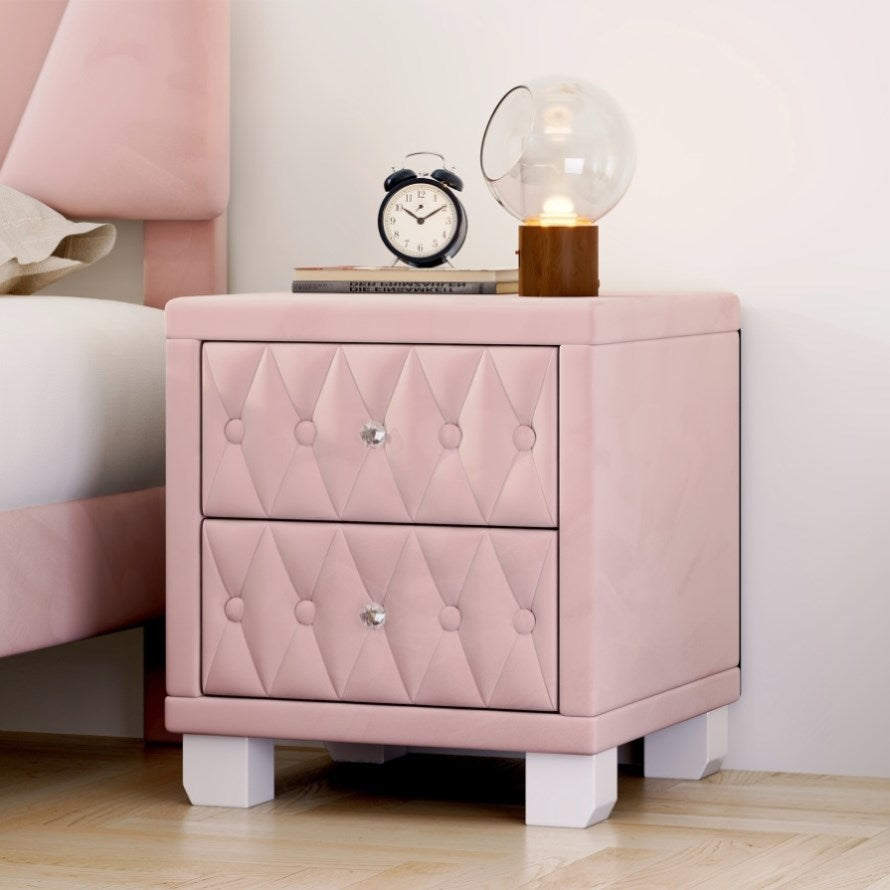 Elevate your bedroom with this nightstand, a perfect blend of sophistication and functionality. Featuring a soft, luxurious velvet finish, this bedside table boasts two spacious drawers adorned with sparkling crystal handles, adding a touch of glamour to any interior. The button-tufted design enhances its timeless appeal, while the sturdy construction ensures durability. With ample storage space, it's ideal for keeping essentials close at hand while maintaining an uncluttered look. Whether placed beside your bed or in a living area, this stylish nightstand is both a practical and elegant addition to your home decor.