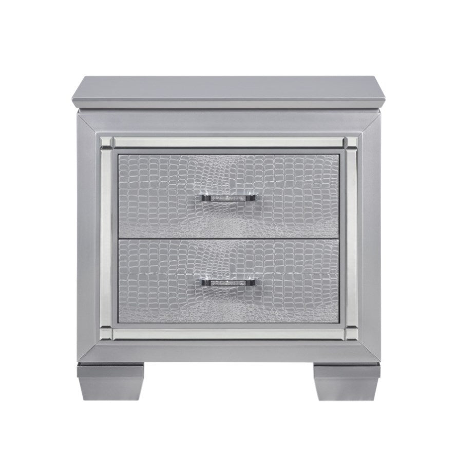 Glamourous Silver Finish 1pc Nightstand 2x Dovetail Drawers Faux Alligator Embossed Fronts Bedroom B01151368