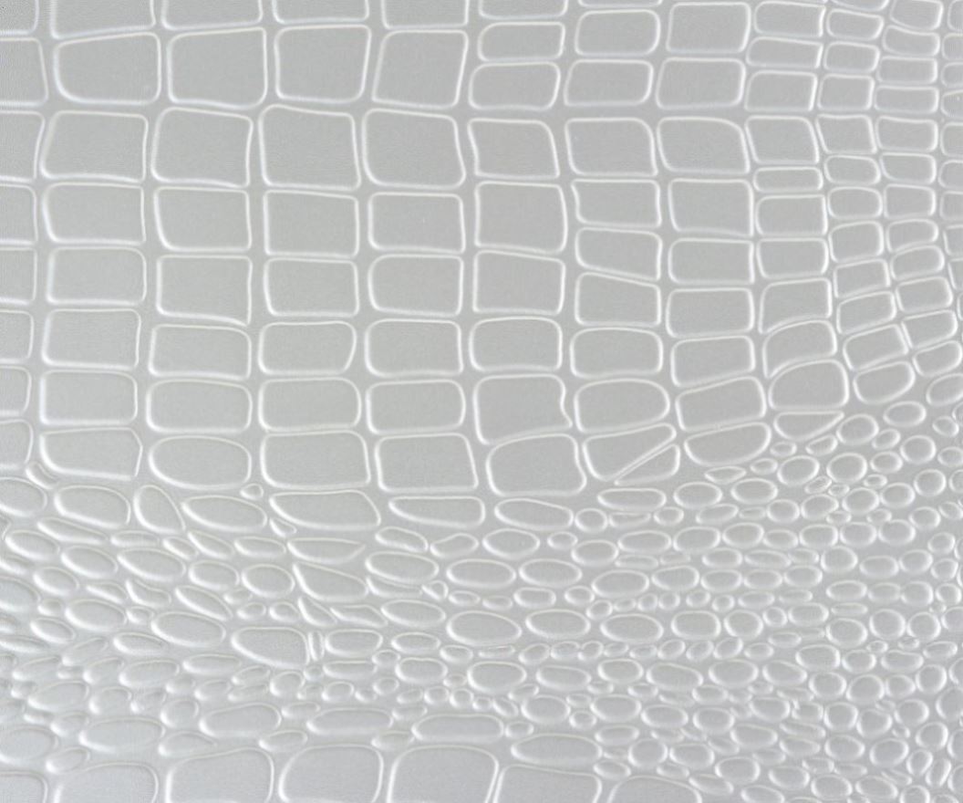 Faux alligator embossed, textural drawer fronts with beveled mirror trim