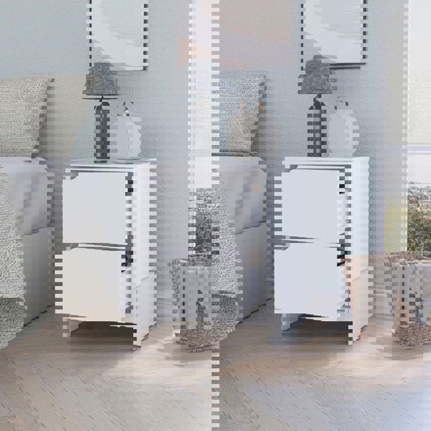 The nightstand features two spacious drawers (12.4"W x 11.2"D), offering ample storage for your bedtime necessities and keeping your bedroom clutter-free.