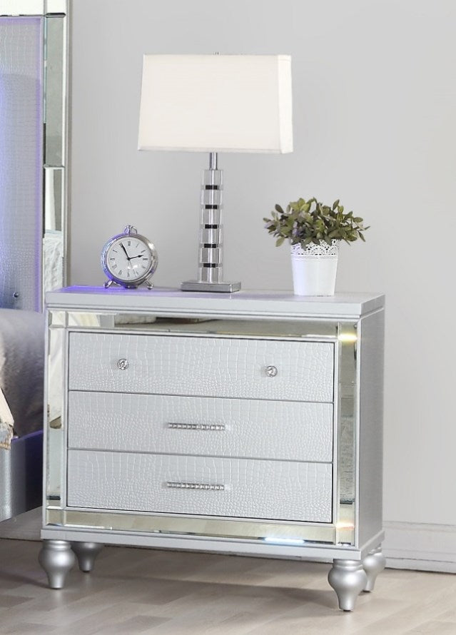 Modern Style Mirror Framed 3-Drawer Nightstand Made with Wood in Silver 808857880529